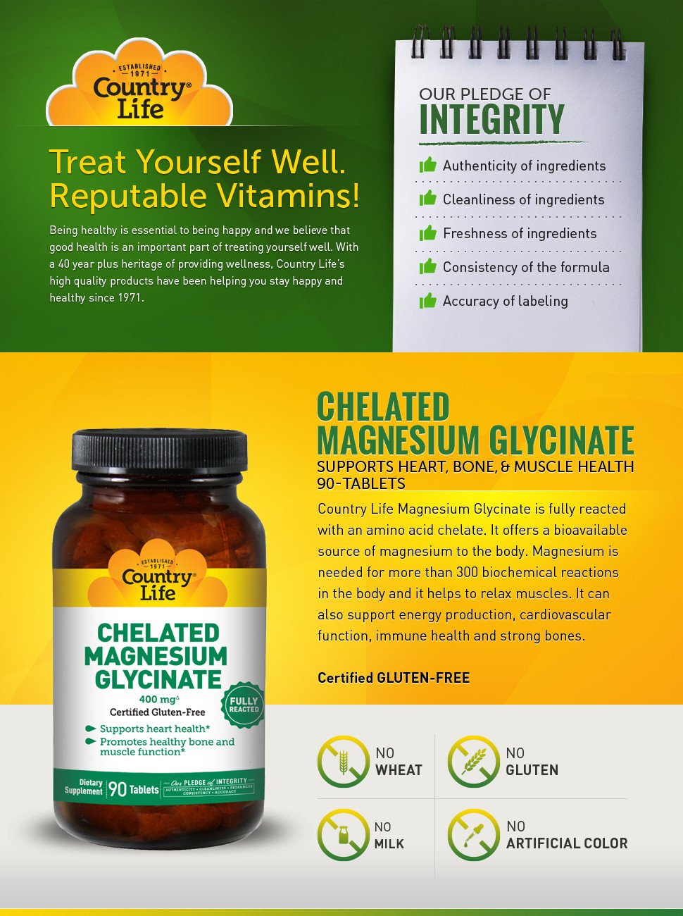 Buy Country Life Chelated Magnesium Glycinate 400mg – High Absorption Magnesium Supplement
